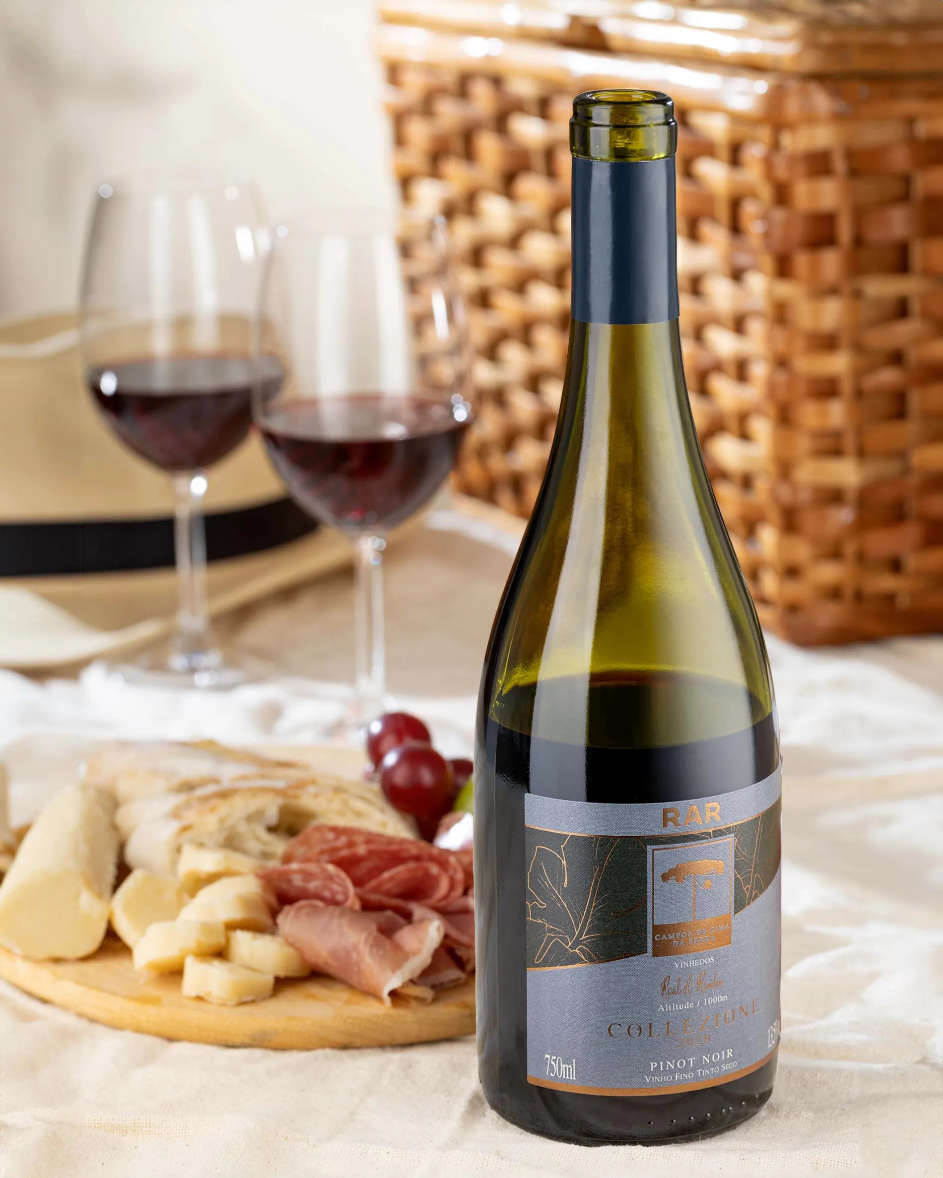 Conhecida como a mais elegante dentre as uvas tintas, as uvas Pinot Noir se adaptam perfeitamente ao terroir dos Campos de Cima da Serra, onde devido a elevada altitude e amplitude térmica, podem amadurecer completamente sem perder a delicadeza e acidez típica da casta. Passa por um período de 9 meses em barricas de carvalho francês, que resultam em um vinho frutado, com leves notas de especiarias e de estrutura macia e sedosa.